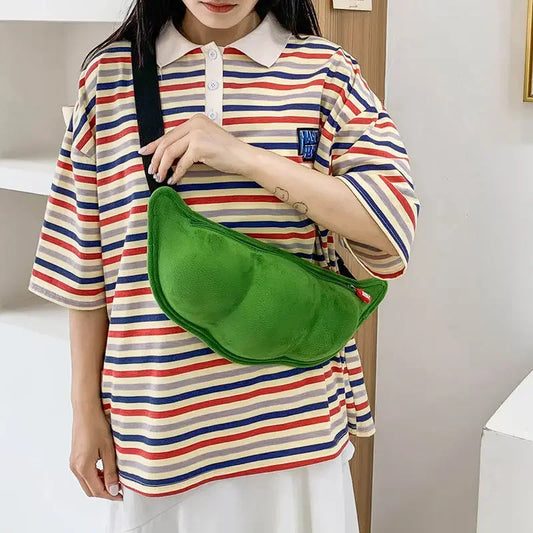 Creative Pea Shaped Fanny Pack, Funny Plush Chest Purse, Cartoon Design Crossbody Bag