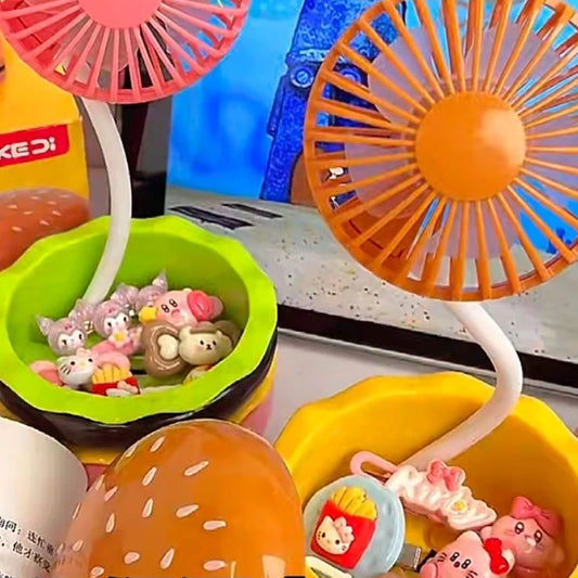 Hamburger Shape Portable Mini Fan Foldable With Makeup Mirrors Electric Hand Rechargeable Small Cooling Ventilador Fans 3 In 1