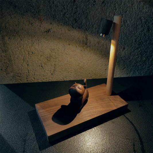 Soft Cute Healing Solid Wood Street Lamp Tsundere Cat Wooden Ornament Desktop Atmosphere Cabinet Bedside Night Light Gift