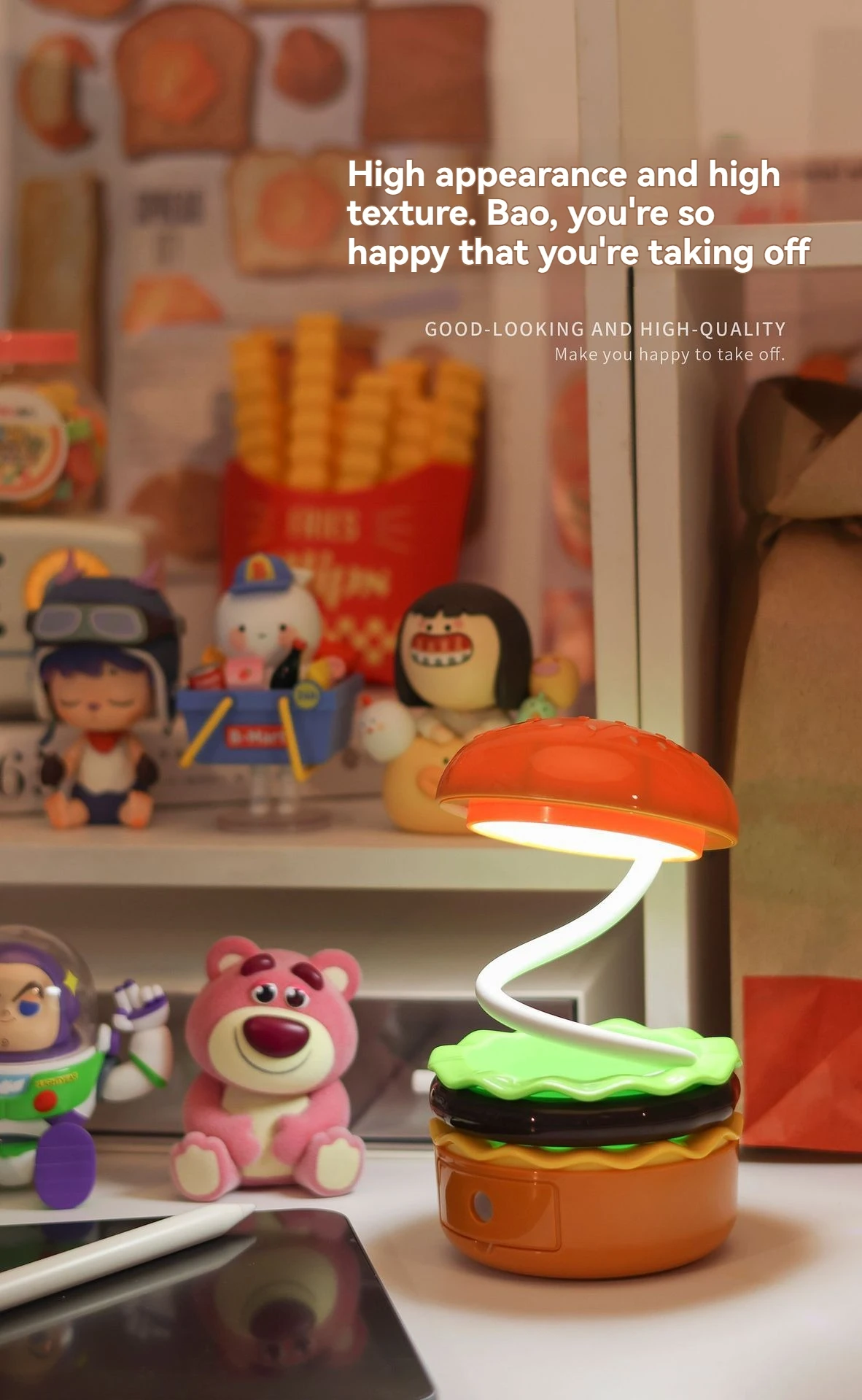 Brighten up your workspace with the Burger Fries Shaped Desk Lamp! This quirky lamp combines fun and function, casting a warm glow while adding a playful touch inspired by everyone’s favorite snack. Perfect for sparking creativity or just enjoying a lighthearted vibe during work or study sessions.