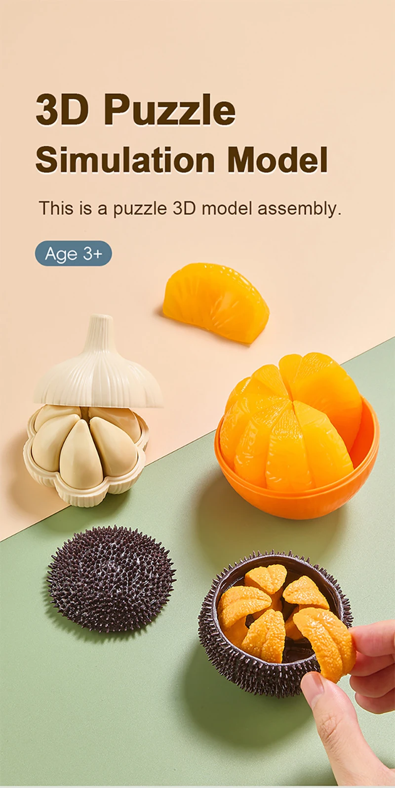Kids Simulation Garlic Puzzles Educational Toys Sea Urchin Tangerine 3D Puzzles Matching Game Food Assembly Decompression Toys